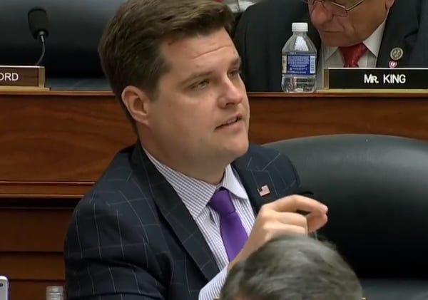 But these differences have not stopped Gaetz from making a stream of exceedingly weird and gross comments about "AOC" over the last few months. Said quotes include repeated statements that he finds her "attractive." He's called her "adorable." And in a reference to the dating app Tinder, he even creepily told TMZ this month that he'd "swipe right" on the idea of working across the aisle with her.