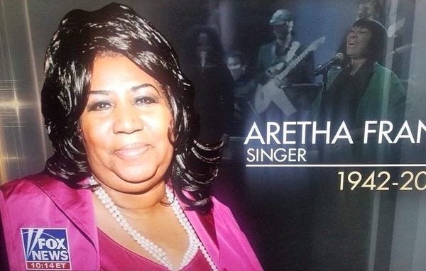 Aretha Franklin's death Thursday had such an impact on us that even FOX News took time out of its jam-packed schedule of promoting white nationalism to acknowledge the Queen of Soul's passing. Unfortunately, the network confused her with the Duchess of R&B Patti LaBelle. Whoops, there it is again. White folks can't tell us apart.
