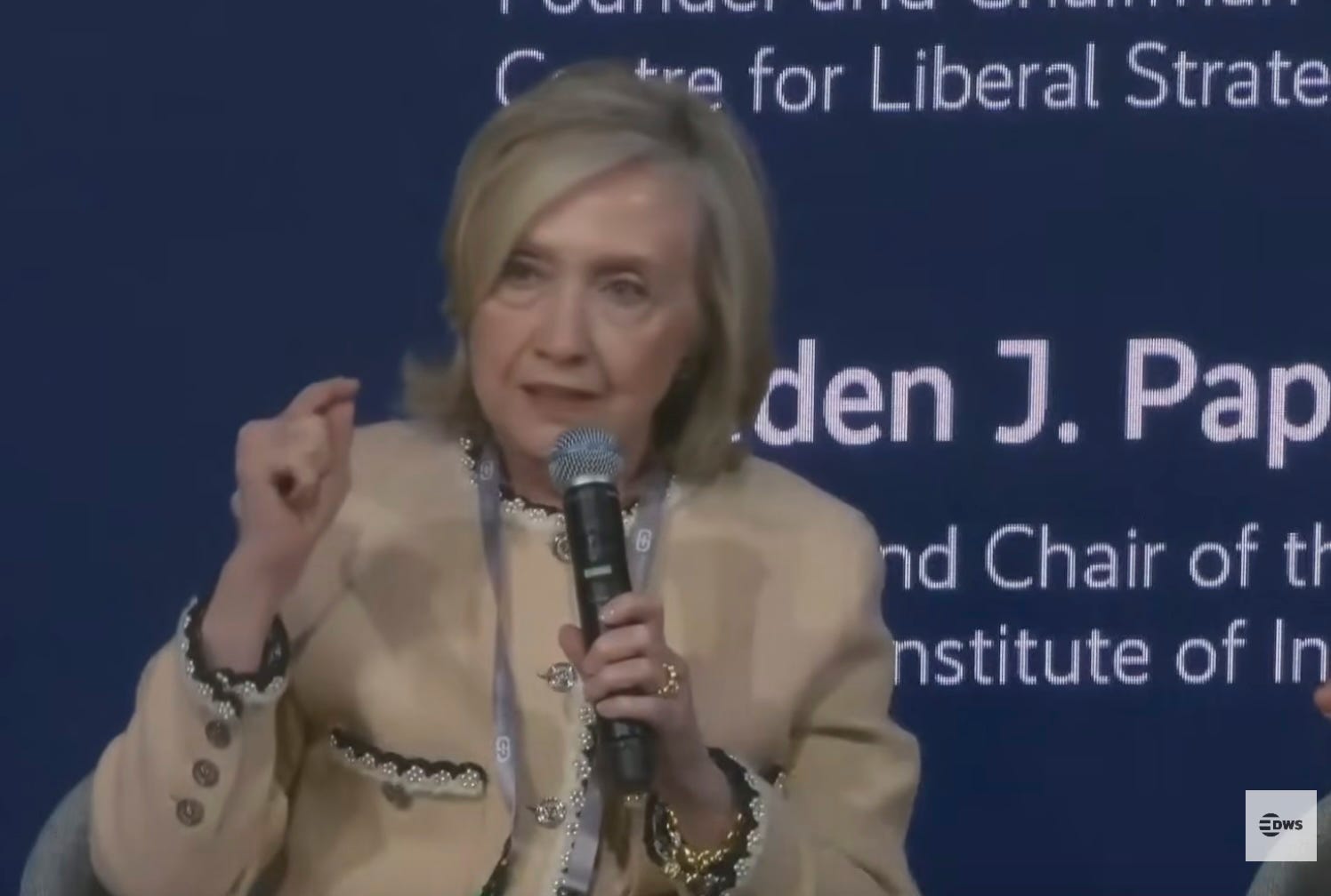 While Rubles was giving that Hungarian the old rub-and-tug, Hillary Clinton persisted. She appeared on a panel to talk about the ideological battles that conservatives have been fighting since the beginning of time, how Trump has betrayed the West, and nobody wants to live under a Putin-style regime.