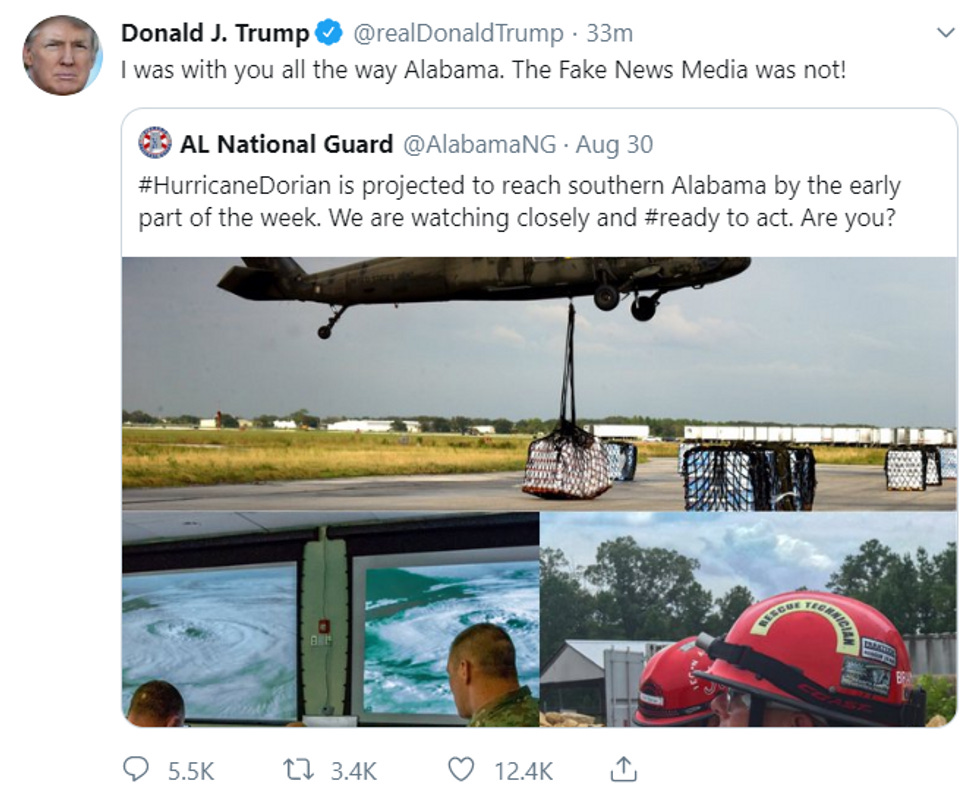 The Fake News Media was fixated on the fact that I properly said, at the beginnings of Hurricane Dorian, that in ad… https: //t.co/xbmq9l9POT