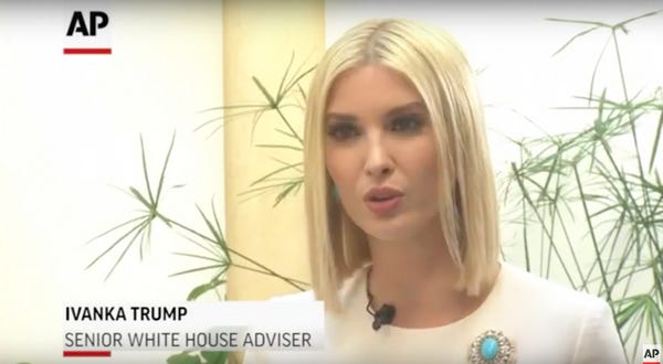 Trump however filled his administration with Disney villain henchmen and demands total loyalty with ritualistic displays of obsequiousness. But Ivanka wasn't done insulting our intelligence. She also did this.