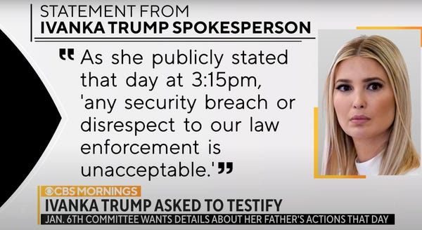 Last week, the House committee investigating the January 6 Capitol attack that Donald Trump incited asked Ivanka to voluntarily cooperate in its probe. Her response was classic Ivanka Trump.