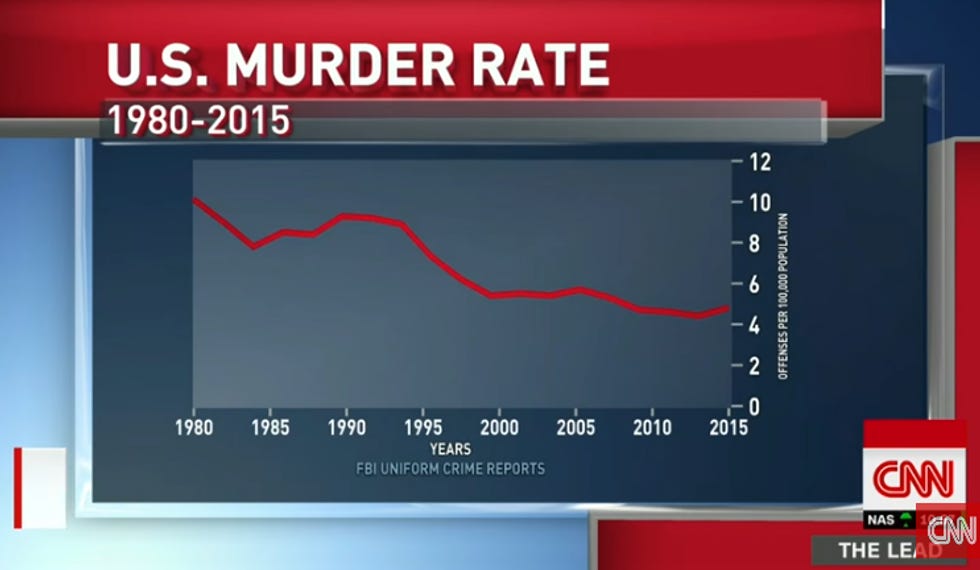 TAPPER: For instance, earlier today, Trump made a quote about the murder rate being at the highest level it's ever been in 47 years. He said that, and he said nobody in the media reports on that. There's a reason that nobody in the media reports on that. It's not true. [...]