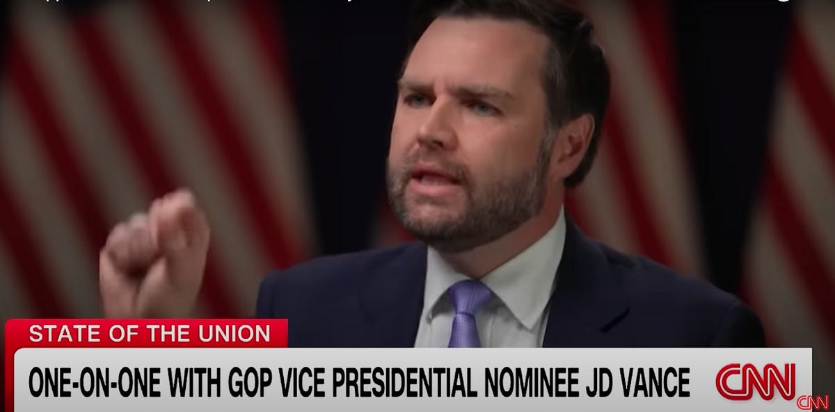 On Sunday, vice presidential candidate and bearded fuckwit JD Vance sat down with CNN’s Jake Tapper for an interview on a range of topics, including Vance’s outlook on the state of America, his goals for his potential vice presidency, and his dreams and aspirations for the future of his children, your children, and the nation he hopes to lead.