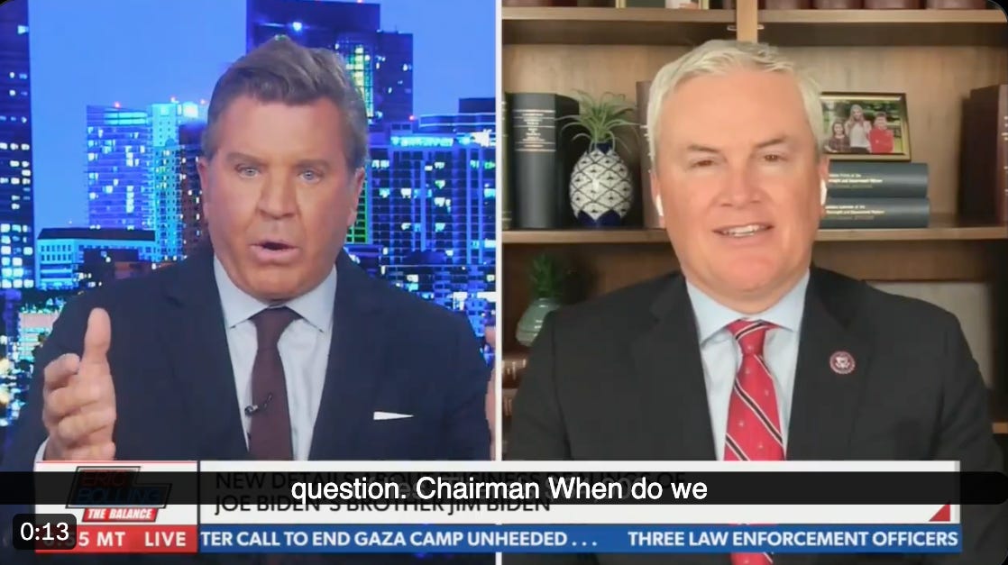 So here he is on Newsmax last night saying that the REAL reason his fruitless investigation continues to bear absolutely no fruit, the REAL reason nothing has happened yet, is that there’s simply TOO MUCH EVIDENCE against the Bidens.