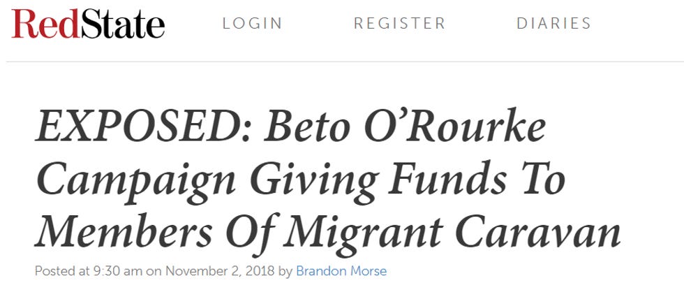 Ted Cruz, because he's an absolute moron and a shameless liar who probably killed JFK with his trashfire dad (OK that part is unverified), has decided -- like the rest of the right-wing media -- to elide all the very thin "facts" of O'Keefe's report and go straight to accusing Beto of PAYING FOR THE CARAVAN. And remember, in the syphilitic brains of Trump supporters, the caravan is full of murderers and rapists and also somehow Middle Easterners (guess Emirates Air is doing some really good specials for "fly from Middle East and land in field in Guatemala") who are stampeding toward America (at about two miles per hour).