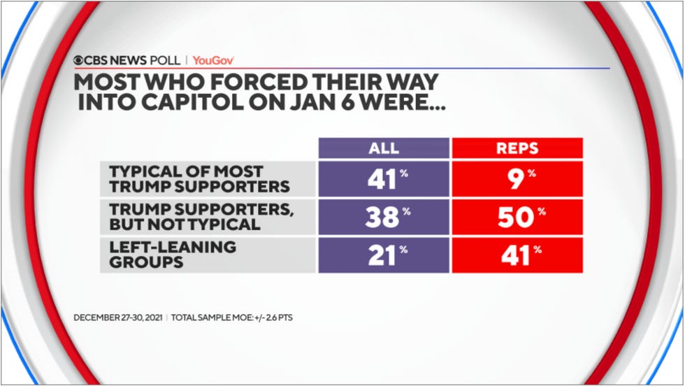 One slightly more unusual finding from that particular poll was the large chunk of people who believed that "most" of the people who invaded the Capitol were left leaning groups.