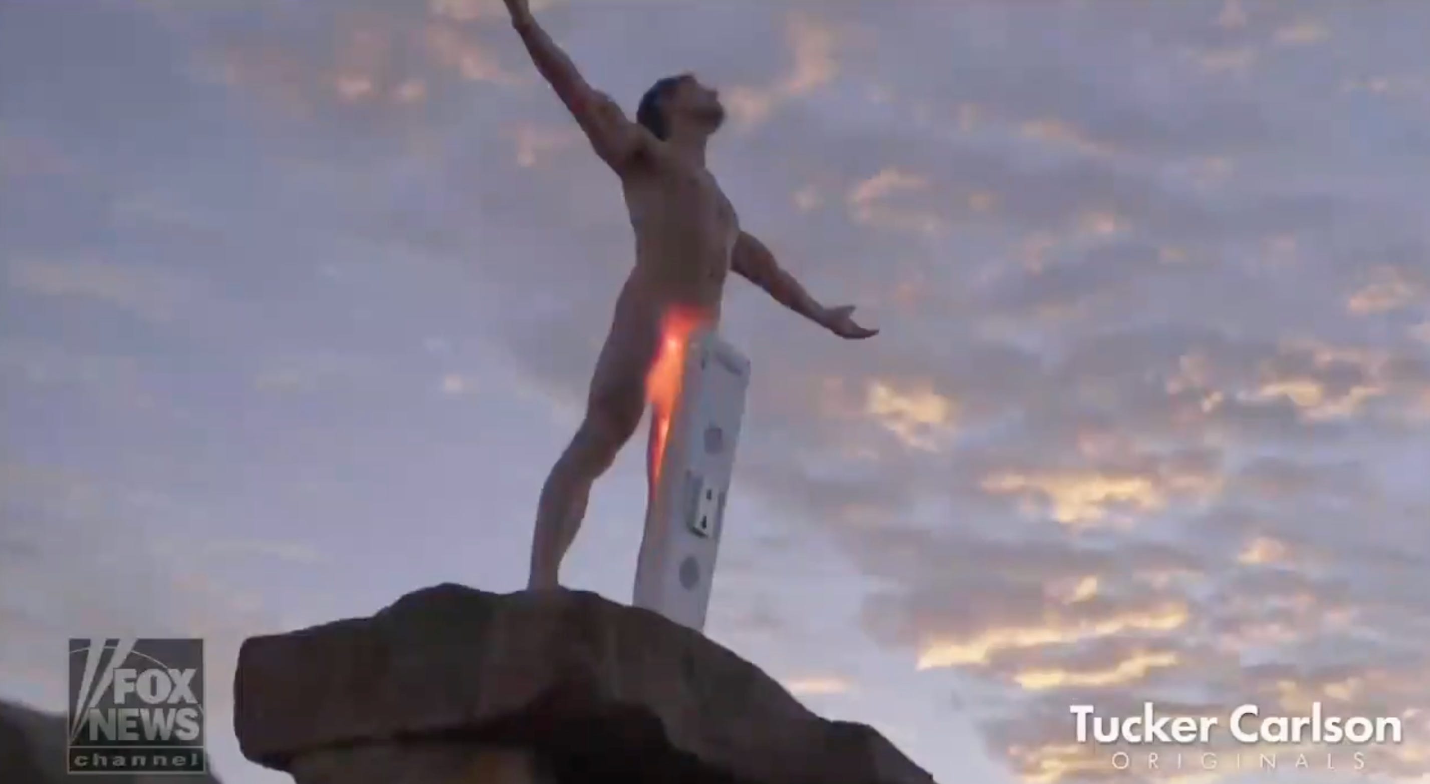 If those three paragraphs sound at all familiar, that is because I used them for a post in April of 2022 about Tucker Carlson’s weird video montage for a documentary he made (that I never saw!) about how no one will let men be manly and do manly things like rassle, chop wood, milk cows (???) or get naked, stand atop a mountain and put their dicks into some kind of … tanning machine, I guess?