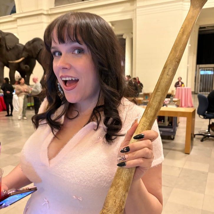 In fact, allow me to enter into evidence my lewk for a Valentine’s Day event at the Field Museum last week, which involved a goddamned pink fuzzy dress covered in bows.