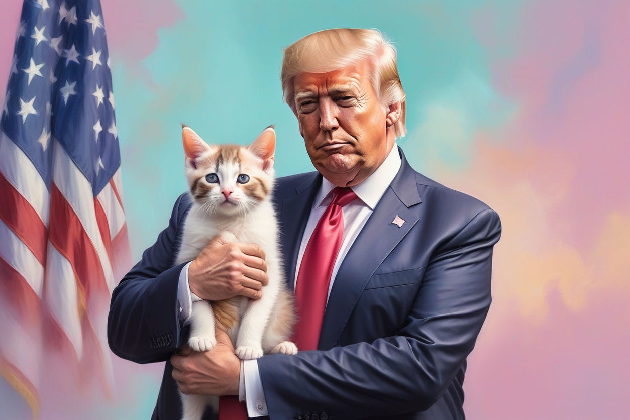 And then everyone on the Right got mad that a moderator pointed out that JD Vance’s lie about cats, which turned into Donald Trump’s lie about dogs, was a lie. What’s next? Will they tell him that unicorns are not real? Will they neglect to bring him his slippers and hot cocoa at bedtime? What is he even paying these servants for? How is he supposed to win this election if people keep pointing out that the things he says are not true, especially when his running mate is going around telling people that even he knows this isn’t true but that they should continue to say it anyway?