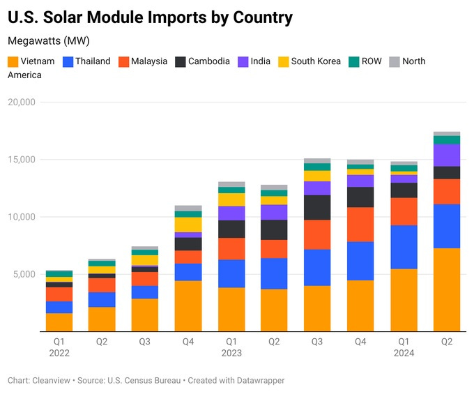 In another lie, Vance falsely claimed that the administration is “spending hundreds of millions or even billions of dollars of American taxpayer money on solar panels that are made in China,” which simply is the reverse of the truth: Since 2022, American solar imports are just plain not coming from China, thanks in part to tariffs meant to exclude them. (Yes, those tariffs were initially imposed by Trump and continued under Biden.)