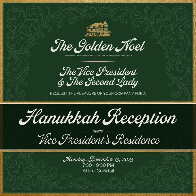 In yet another seasonal blunder that’s become almost as much a Hanukkah tradition as wondering how kids in olden days got excited about dreidels or “A Rugrats Chanukah,” Vice President JD Vance’s office sent out invitations to a Hanukkah celebration at the Veep’s residence that treated the Jewish holiday as just one more part of Christmas. Twice!