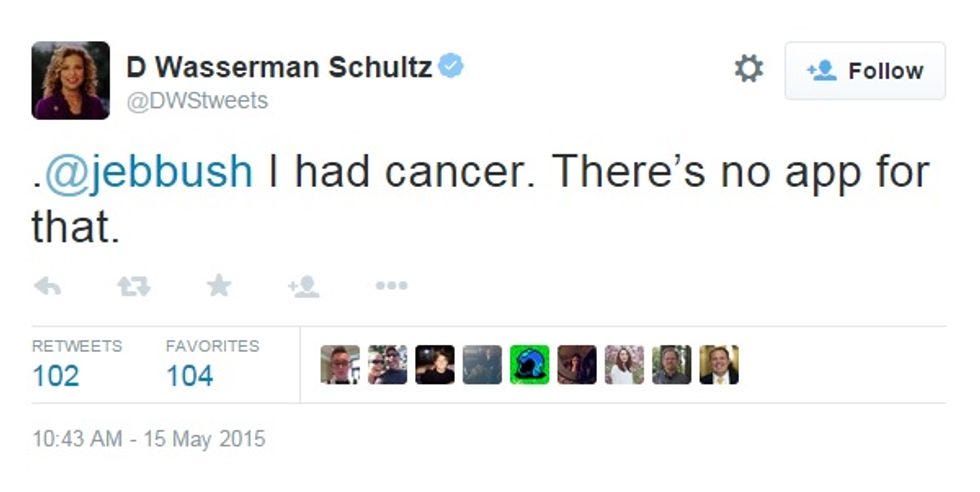 DNC chair Debbie Wasserman Schultz used the Information Superhighway to point out a small problem with Bush's reasoning, also too: