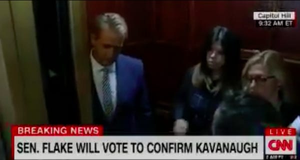People expect more than they should from Flake, who likes to say soothing words while suffocating you with a pillow stuffed with ACA repeal and tax cuts for the rich. Flake patted himself on the back for agreeing to "listen" to Christine Blasey Ford. This is classic male behavior. We'll "listen" but we'll "plow on through" with what we want. I even recall a very Flake-like former boss who was brilliant at this and explained how "empathetic listening (TM)" was effective for achieving "buy in" from the ladies. I get the sense that sexual assault survivors demand more than smiling men pretending to "listen" to them.