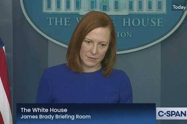 Here's audio, from Mediaite. Do not freak out, that's just a still image of Psaki, she's not going to move.