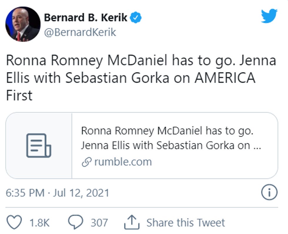 As the Post reports, Ellis has been making war against Ronna McDaniel, because she's super mad the RNC didn't do enough to steal the election for the fuhrer . She believes #RonnaMustGo, and she's been using that hashtag. Meanwhile, McDaniel thinks the GOP should focus on winning the 2022 elections, instead of the 2020 one. And the mean RNC won't even pay any legal bills for Roodles The Clown!
