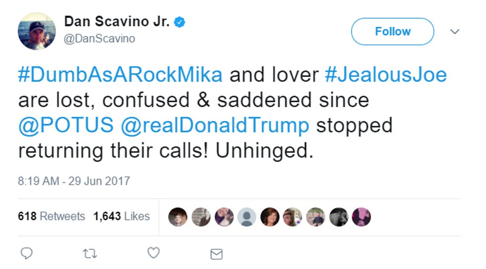 Because Trump's pajama boy minions are such cucks for his approval, here is Trump staffer Dan Scavino, piling on: