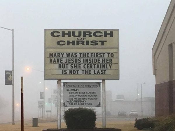 You are probably thinking, "Shaddup Wonket, you found that on internet, or you made it on internet," but WRONG AGAIN, DINGUS. That was spotted and posted by Wonk pal Chris Davis of the Memphis Flyer , whom we are friends with IRL. It was taken in West Memphis, Arkansas, which is a "suburb" of Memphis, sorta kinda because we who live in Memphis try not to claim it all that much.