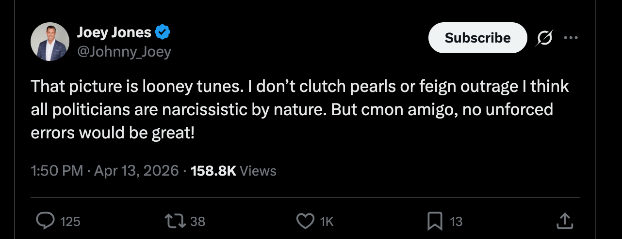 Joey Jones, a Fox News guy, brought out the big guns and called Trump’s post “looney tunes” and said “cmon amigo!”