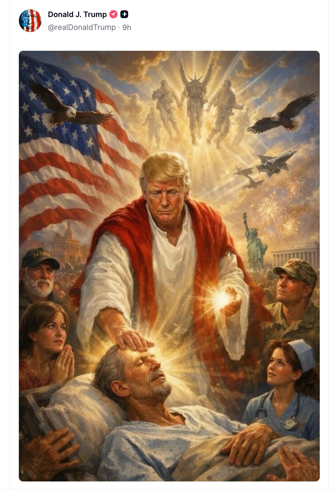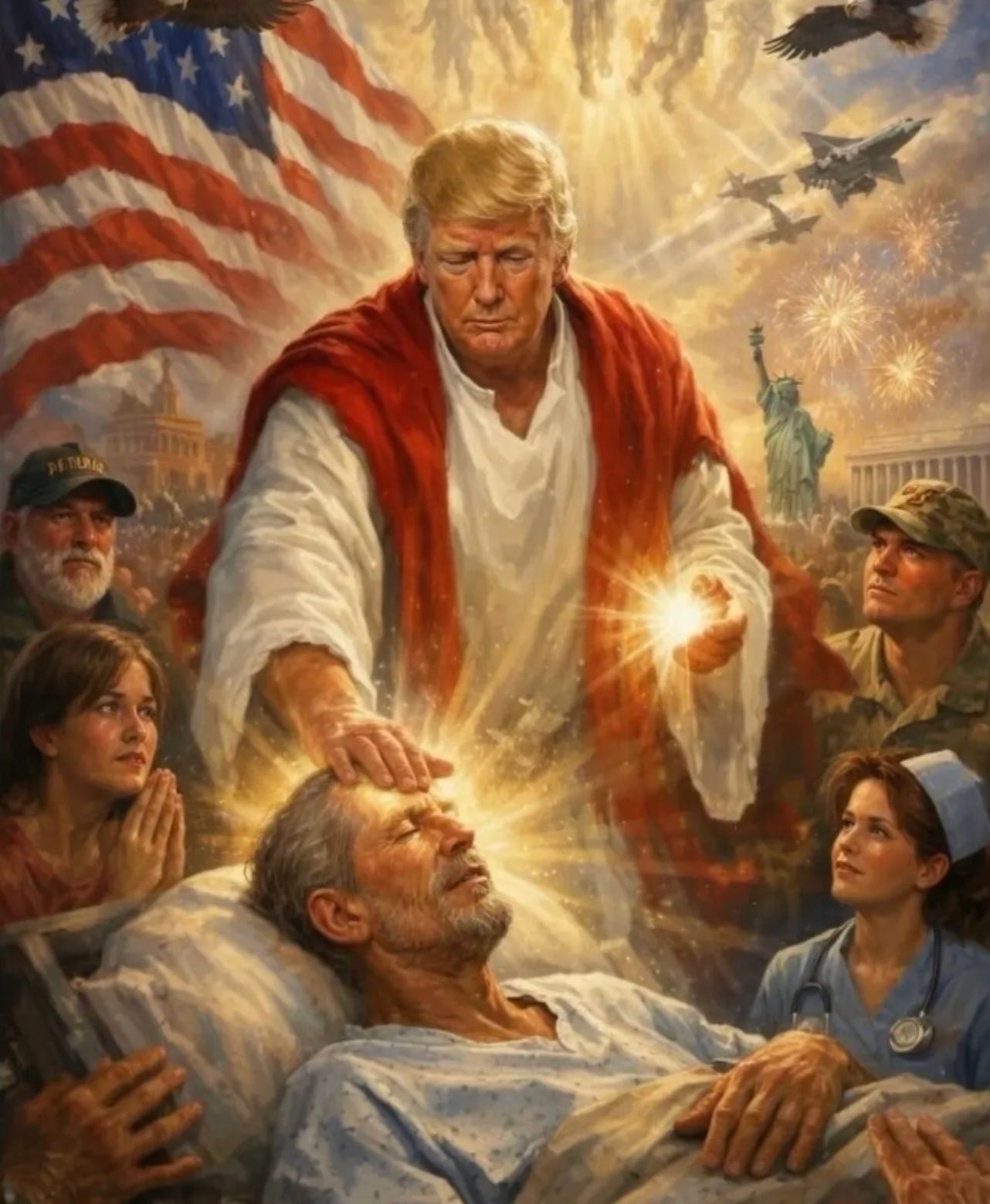 Jesus Trump Deletes Pic Of Himself Healing Sick Because MAGA Is No Fun Anymore