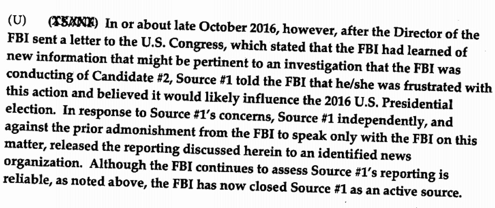 As for the second, the FBI totally fucking told the court where some of the intel came from. Now, Jordan is right that the app didn't say HILLARY CLINTON, because that's not how FISA apps are written. They don't name Americans, because the FBI/DOJ and the rest of the intelligence community go to great lengths not to UNMASK American citizens named in such documents. (Ask your buddy Devin Nunes about UNMASKING, you flagon full of lobotomized turkey jizz.)