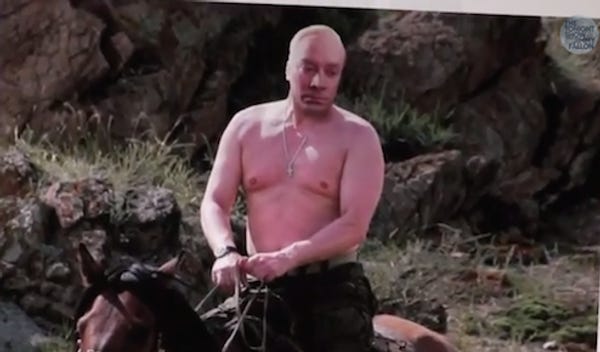 Because we are a Happy Nice Time blog not a Geopolitical Feelings blog, we don't talk a ton about Russia, even though we've learned that Edward Snowden thinks they are super awesome on human rights and Ron Paul lurrrvvees them. We will, however, succumb to Russia-talking if it involves Jimmy Fallon as Vladimir Putin.