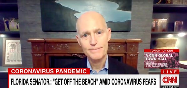 Unemployment is also hitting Florida hard, and thousands of jobless workers are struggling to apply for help through what passes for Florida's system. In fairness, this is an unprecedented surge in jobless claims that would tax even the most competent system, but Florida's system is grossly inadequate by design. An adviser to the governor calls it a “shit sandwich," and former Republican governor, Rick Scott, now their senator, is the turd chef.