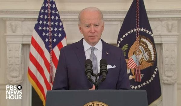 He also pointed out that in some industries, wage growth was even better due to the tight labor market; in the leisure, hospitality, and restaurant sector, wages are up 14.1 percent, the best of any industry. Where there were 20 million people on unemployment a year ago, that's now down to about two million. The country is back to work, and also you're welcome for the vaccine distribution and the boosters, maybe some of you will figure out that's how we'll get back to normal. Said Biden: