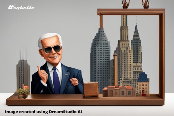 While Donald Trump and the Republicans who want to run against him keep competing to see who can be meanest to people Republicans hate, Joe Biden is rolling out campaign themes that emphasize how quickly the US has recovered from the economic morass that resulted from the COVID-19 pandemic. The White House yesterday released a statement touting the economic recordof the Biden-Harris administration, with a title that's a little big for a bumper sticker but gets the point across: "Bidenomics Is Working: The President’s Plan Grows the Economy from the Middle Out and Bottom Up—Not the Top Down."