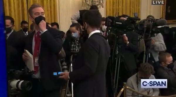 Moreover, it's not the same as when Donald Trump would have a conniption and call the press the enemy of the people or stupid. First of all, nobody thinks Peter Doocy is "the press." Never before has anyone seen Peter Doocy and uttered the words, "Oh no, here comes the journalism man! Everyone guard your secrets!"