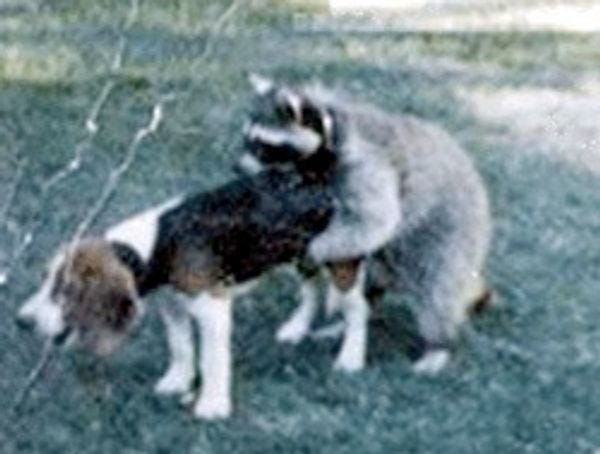 Ha ha, we get to use that fantastic photo AGAIN. Just as raccoons executed a full-scale assault on the White House, we get word that a beagle/dachshund mix is loose near Observatory Circle. What is it with our current numbers 1 and 2, and their curious wildlife-attracting powers?