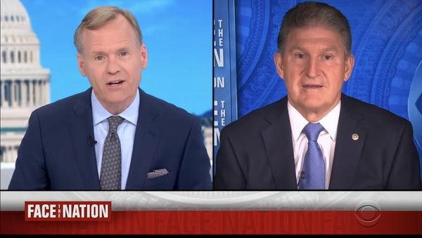 The Democratic senator from West Virginia, prior to his dual Sunday show appearances on CBS's "Face The Nation" and "Fox News Sunday," published an asinine op-edon why he's not going to do anything to save democracy. Through its many logical twists and turns, it was clear Manchin deems his personal "hero's journey" more important than actually protecting democracy.