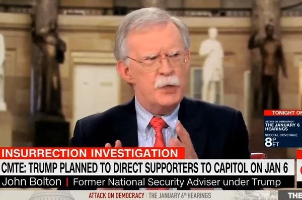 In a mildly intriguing sideshow to yesterday's January 6 Select Committee hearing, former Trump national security mustache John Bolton casually took credit on national TV for having planned out a few coups d'etat himself, so he knows the January 6 insurrection wasn't much of a coup plot.
