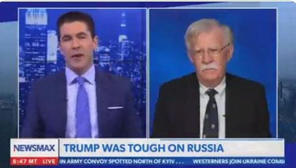 John Bolton Being Mean To Newsmax Idiots Who Say Trump Was Tough On Russia