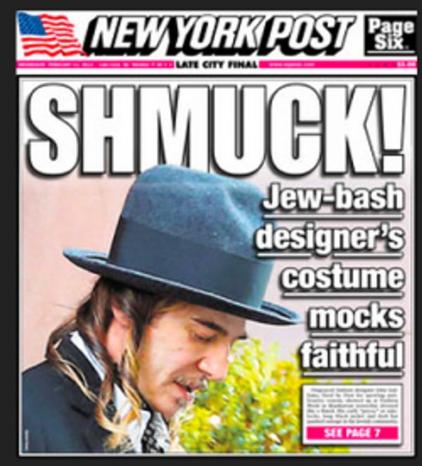 Anyhoo, here's Galliano calling women "dirty Jew faces," because that never gets old.