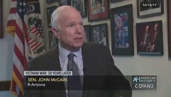 TONIGHT - @SenJohnMcCain talks about the Vietnam War's legacy on C-SPAN, at 6 & 10pm ET. pic.twitter.com/WnZT0n8Mcn