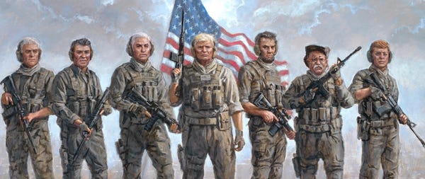 Anyway, there is a new release from America's Greatest Artist, and it is McNaughton's favorite presidents cosplaying as the co-stars of some kind of military-themed superhero gay porn or something. It's called "The Magnificent Seven."