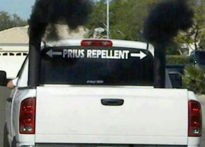 Well no, Mr. Tester, you have a Prius in a city, and that clearly means you need to go club some baby seals and drive a supertanker onto a reef, but even that may not prove your loyalty to Sparkle Fossil Motion.