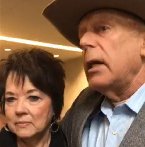 Bundy also insisted that he'd only ever grazed his cattle on land belonging to Clark County, Nevada, because in his very special copy of the Constitution, there is simply no such thing as BLM land, because the federal government isn't allowed to own land (a position no federal court has ever agreed with, which just proves the courts are disobeying the Constitution, too). He insisted he never had a "contract" with the federal government, and therefore the court that had just released him "has no jurisdiction over this matter."