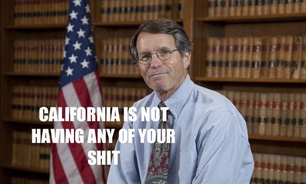 Illegal Intent: The President went on TV to clarify that he explicitly intended to punish California, because he is a dumbass.
