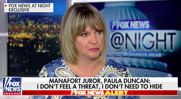 And as much as we wanted to make fun of the Trump-loving juror who went on Fox News to tell her story last night, we just can't. This lady kept an open mind, followed the evidence, stayed off the internet, and took her obligation seriously. This is how the American justice system is supposed to work.