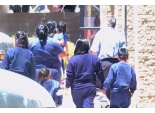 Needless to say, the defense contractor, MVM Inc., denies that it's in the business of housing kids at all, despite video taken by a woman whose house is next to the office building showing white vans arriving and children of various ages being escorted inside. It's not known whether all the kids had been taken from their parents, but some sure don't look like they crossed Mexico as unaccompanied minors, like the little girl being carried by an adult. Here's the video, taken by neighbor Lianna Dunlap: