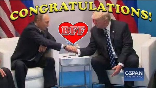 Trump called Vladimir Putin to congratulate him on his lateststolenelection, despite the express wishes of national security adviser, HR McMaster, who literally wrote "DO NOT CONGRATULATE" on his cue cards. Trump was elected to lead, not to read!