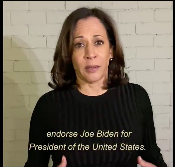 Sunday morning, Kamala Harris joined the stampede of Democrats hopping on the Joe Biden express train back to Washington, DC. There was some speculation that Harris might endorse Biden earlier, prior to the Super Tuesday California primary, which was one of the few Bernie Sanders won. I personally think it was wise to wait because Sanders had a significant lead in the early vote, and a last-minute endorsement likely wouldn't have significantly narrowed the gap. More importantly, I think Harris, like Warren, has the right to endorse on her own damn timetable.