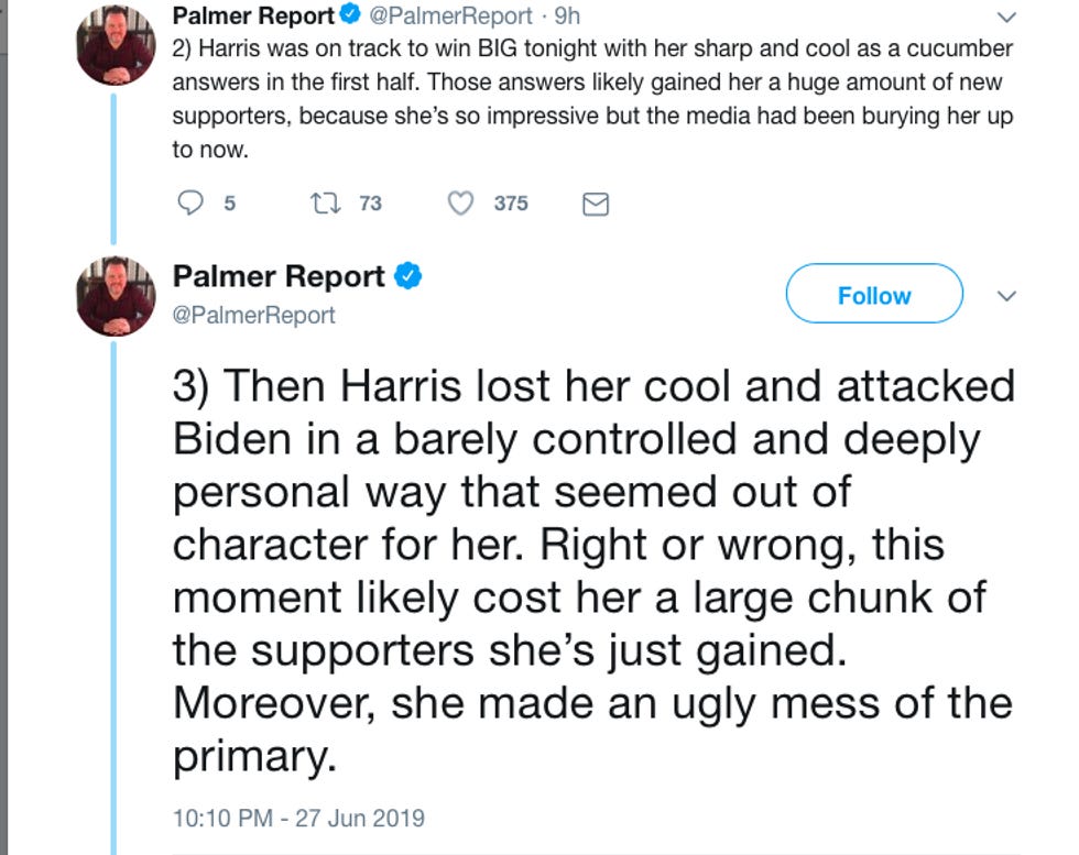 That said, I'm delighted to see Warren and Harris gain so much after the first debate. And there are more debates to come.