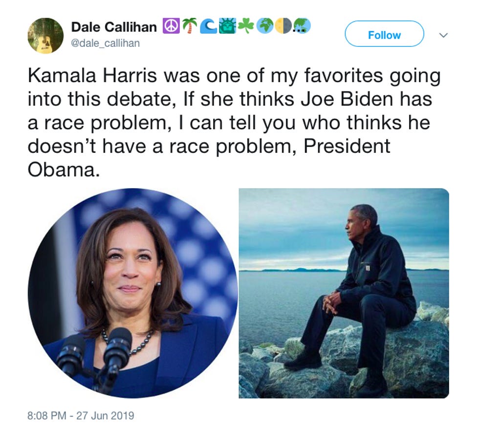 Passion and righteous anger from black women might alarm you, sir, but get used to it. Our sisters aren't staying silent any longer. Besides, this was a presidential debate. Harris didn't get drunk and petty at a church cookout. Nor did she make an "ugly mess" of the primary. She took control of the race and defined the dialogue. Biden voluntarily boasted about his relationship with segregationists, and it's not a comment out of context. He's perceived as "electable" because he can "connect" with white male voters who "drifted" from the Democratic Party over the past few decades. The party has only moderately changed its platform during that time (look it up). However, it's drastically changed its face. That is what people in rural Pennsylvania find so "radical." Prominent Democrats now include women, minorities, and LGBT. A white man has not been at the top of a Democratic presidential ticket since 2004. Donald Trump's presidency is itself a product of this racial and cultural backlash. Even the most benign nostalgia for a Democratic Party that was whiter, maler, and more overtly racist shouldn't go unchallenged. As Harris said recently, "We won't go back."