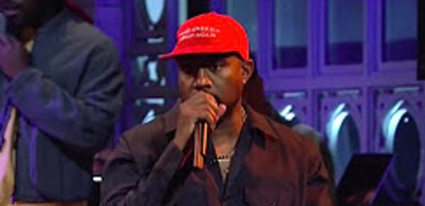 I think the issue here is that conservatives define "being political" as advocating for any change in the white supremacist patriarchy we have going here. Embracing the status quo or "traditional values" or whatever dog whistle you want to blow is by default "non-political." Wearing a MAGA hat when performing on "SNL," a show whose breakout star is gay, is not seen as deliberately offensive. Kate McKinnon isn't a veteran so conservatives aren't appalled on her behalf like they are when NFL players kneel during the national anthem to protest police brutality. Tucker Carlson wondered why Stephen Colbert would wear a "divisive" Black Lives Matter bracelet during the first week of his "Late Show." That was playing politics. Kanye is merely showing his love forRussiaAmerica. No matter how much overt bigotry and child abduction the Trump administration promulgates, conservatives will demand that we "tolerate" everything a MAGA hat represents just like they sort of tolerate minorities existing.