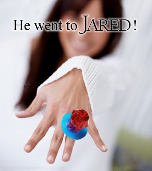 Cool PR strategy, bro. But isn't it really both the harassment AND the wage discrimination? Signet has warned its shareholders that the company will take a substantial financial hit if the arbitrator awards back pay to thousands of women. And it's a safe bet that their store traffic will decline on today's news. Wouldn't you rather he went to the pantry and made you a necklace of macaroni than to Jared right now?