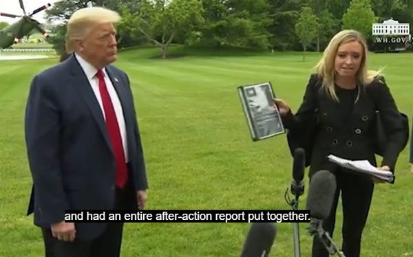 [ holds up binder we are guessing Jared Kushner glued a picture to, probably says "hOW tO pAnDeMic" ]