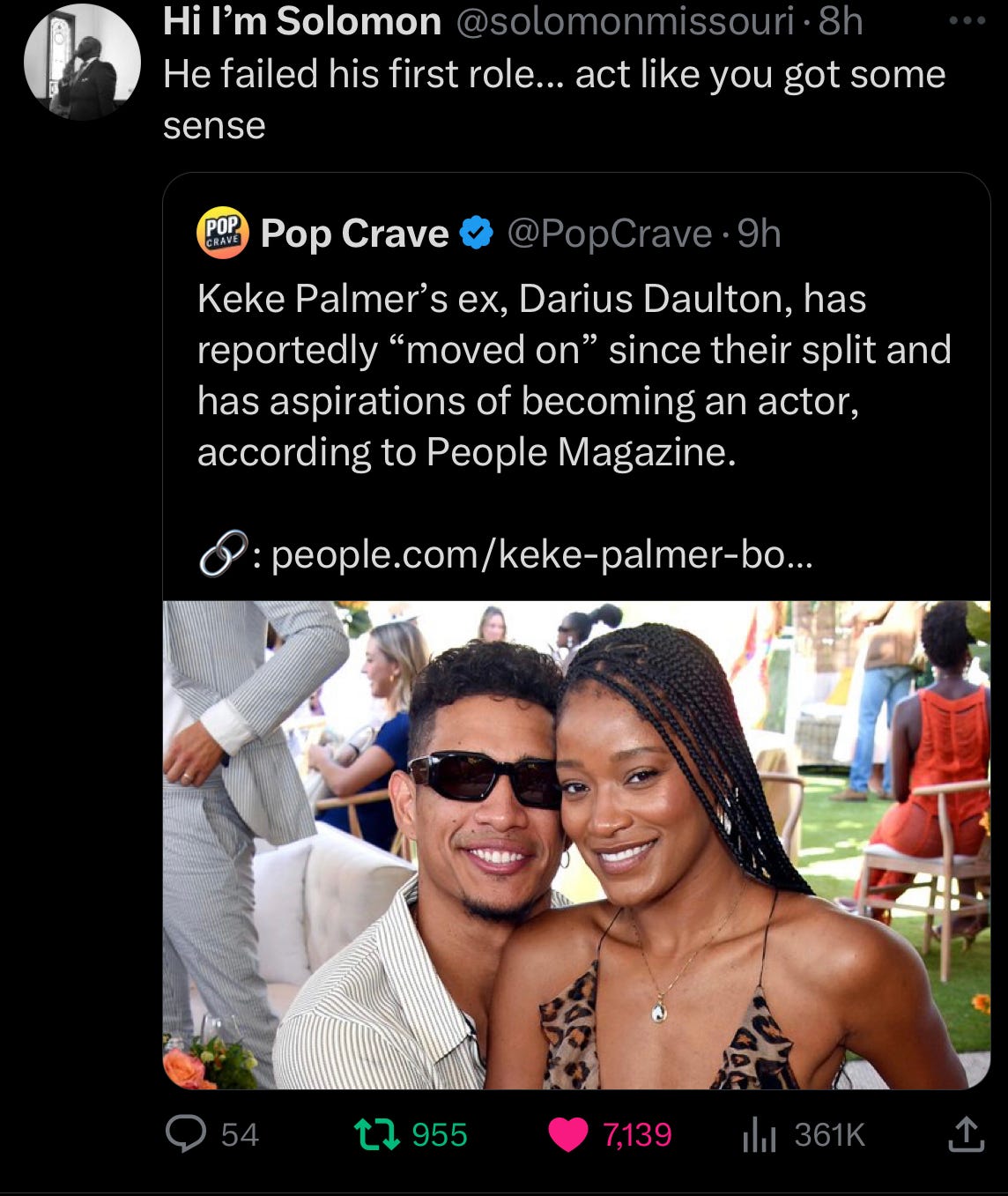 Almost immediately, the internet overwhelmingly responded with people (rightfully) defending Keke Palmer’s right to wear what she chooses and enjoy a concert. But there was also the contingent of weak men who began responding with things similar to Darius Dalton like: